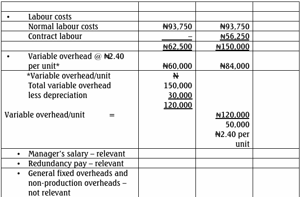 contract labour at a cost of N5.625 per hour. If the department is shut down