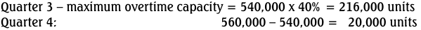 The existing production facility can only produce 540,000 units per quarter under regular time. However, it is possible to increase output by 40% if working overtime is introduced.