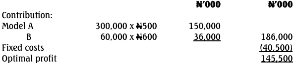 - Fixed production overheads attributable to the manufacture of both models total N40,500,000.