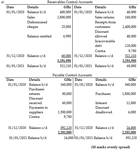 a) Prepare the Receivable and Payable Control Accounts for Daakye for the year ended 31 December 2020.