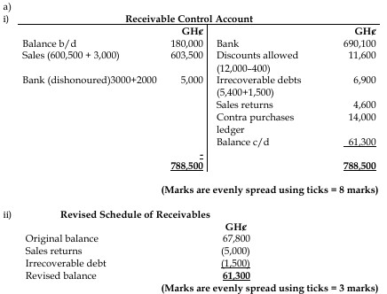 ii) Prepare a statement reconciling the corrected balance on the Receivables Control Account with the corrected balance on the Schedule of Receivables. (3 marks)
