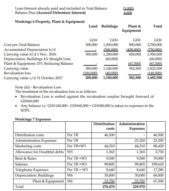iii) The land and buildings were revalued in total at GH¢1,300,000, of which land amounted to GH¢200,000, as at 31 October 2017. This has not been recorded in the books.