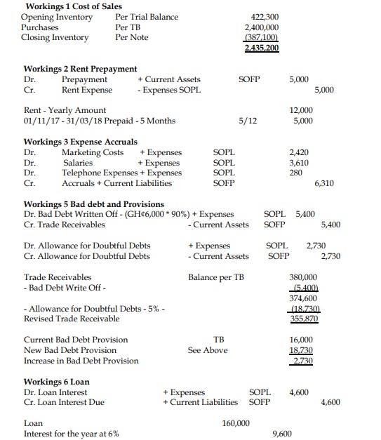 v) There are outstanding balances for Marketing Costs, Salaries, and Telephone Expenses amounting to GH¢2,420, GH¢3,610, and GH¢280, respectively, which have not yet been included in the above trial balance.