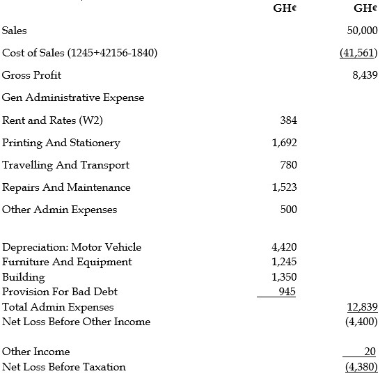 vii) During the year, a motor vehicle costing GH¢1,200,000 was disposed of. The vehicle had been in existence for 3 years. Proceeds from the sale of the vehicle were GH¢500,000. This has not been accounted for in the books of Bob and Sons.