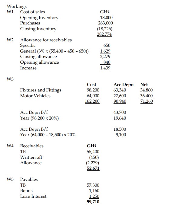 - Irrecoverable debts of GH¢450 in addition to those already written off.