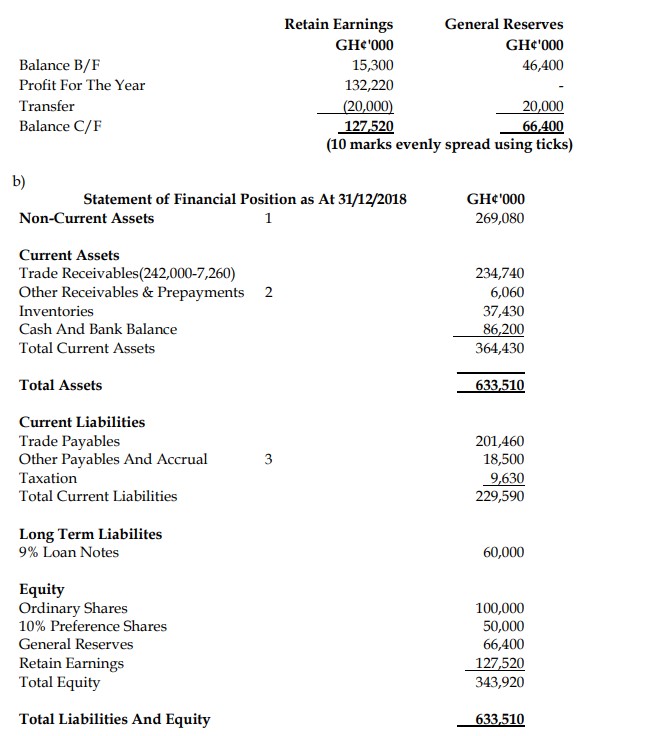 b) Prepare Nhyiraba Ltd’s Statement of Financial Position as at 31 December 2018. (10 marks)
