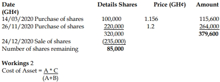 i) He acquired 100,000 ordinary shares for GH¢115,600 on 14 March, 2020. He also acquired another 220,000 shares on 26 November, 2020 at a price of GH¢1.2 per share.