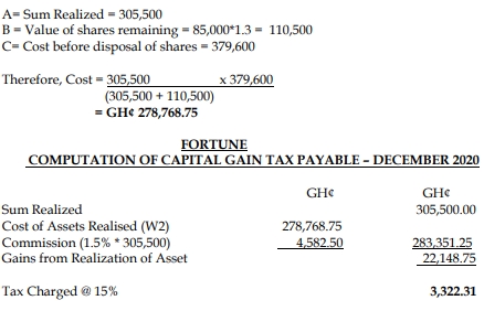 ii) On 24 December, 2020, he sold 235,000 shares for GH¢305,500 which attracted a sales commission of 1.5% of the sales value to the brokerage firm.