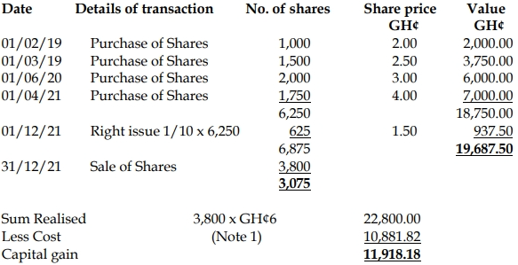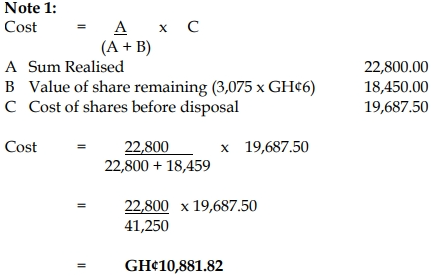 Computation of capital gains tax 25% x GH¢11,918.18 = GH¢1,787.73