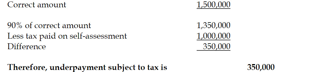 Therefore, underpayment subject to tax is 350,000