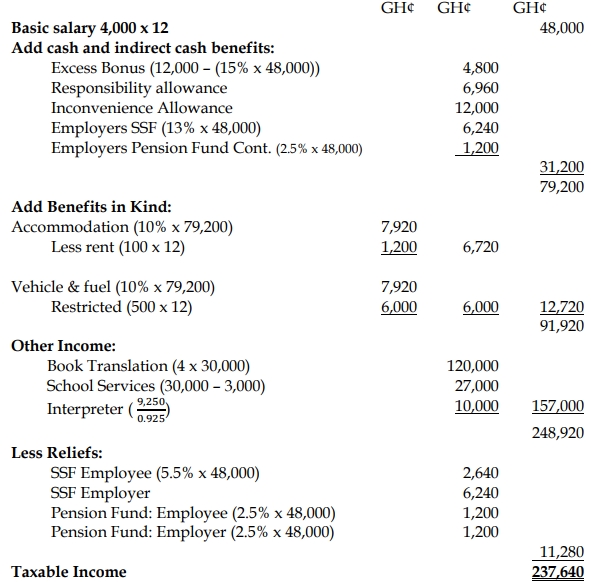 vii) Agyeiwaa received a total of GH¢12,000 inconvenience allowances from the Mountaintop School during the year.