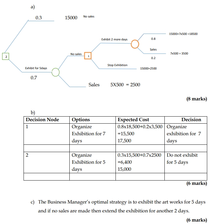 Required: a) Draw a decision tree representing the Business Manager’s decision-making process. (8 marks)
