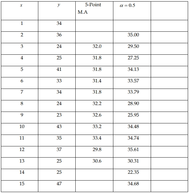 iii) Compute a ‘weighted’ moving average for the data if the smoothing constant is α=0.5α=0.5.