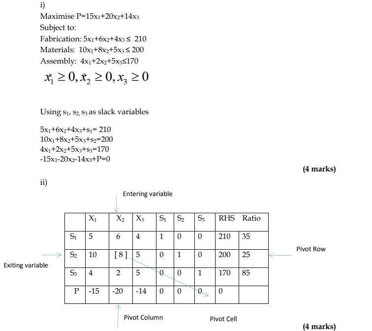 ii) Set up the initial Simplex Tableau. (4 marks)