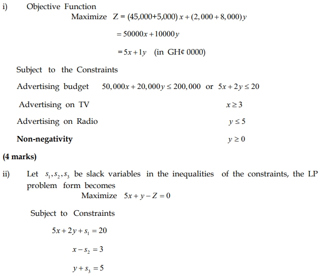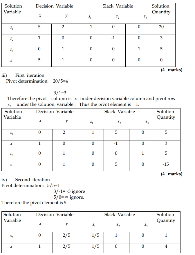 ii) Construct the initial simplex tableau. (4 marks)