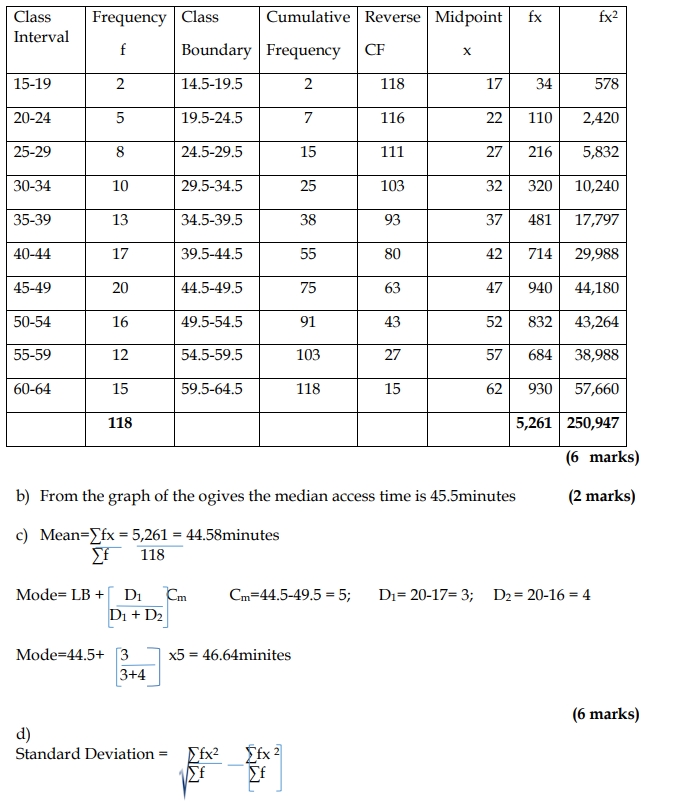 c) Calculate the mean and the mode of the access times. (6 marks)