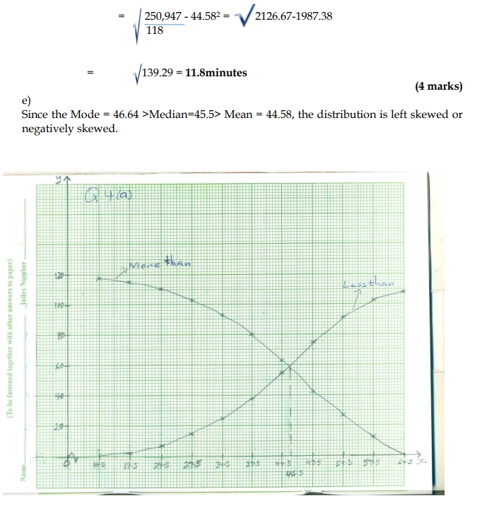 e) Using the values in (b) and (c) above, comment on the skewness of the distribution. (2 marks)