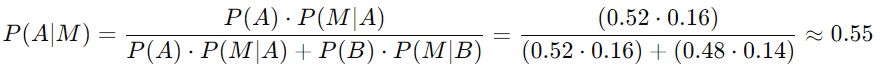 The following tree diagram shows the scenario with two cashiers (A and B) at a bank where M represents mutilated notes and N represents new notes.