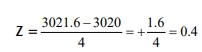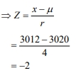 ∴ P(Z < -2) = 0.5 – 0.4772 = 0.0288