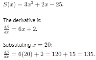 Thus, the marginal revenue when x = 20 is 135, corresponding to option E.
