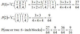 ii. A block-making factory produces TWO types of blocks: 6-inch and 9-inch. ONE quarter of its output on a particular day are 6-inch blocks, while the remaining three-quarters are 9-inch blocks. If samples of 3 are taken at random, what is the probability of obtaining: