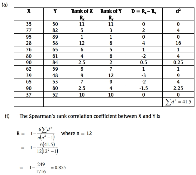 i. Calculate the Spearman’s rank correlation coefficient between xxx and yyy. (9 Marks)