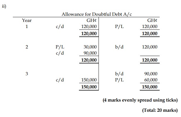 ii) Allowance for doubtful debt account (4 marks)