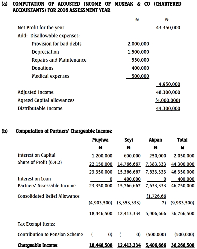 - Compute the adjusted income of Museak & Co for tax purposes. (6 Marks)