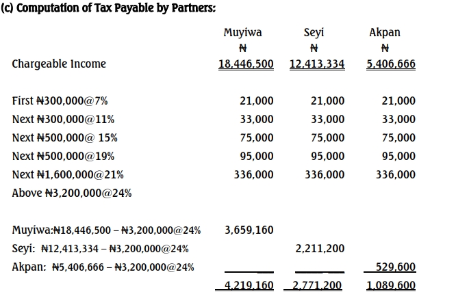 - Compute the tax payable by each partner. (8 Marks)