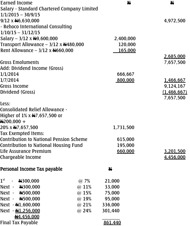 ALHAJI TIJANI BELLO COMPUTATION OF PERSONAL INCOME TAX PAYABLE FOR 2015 YEAR OF ASSESSMENT