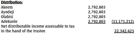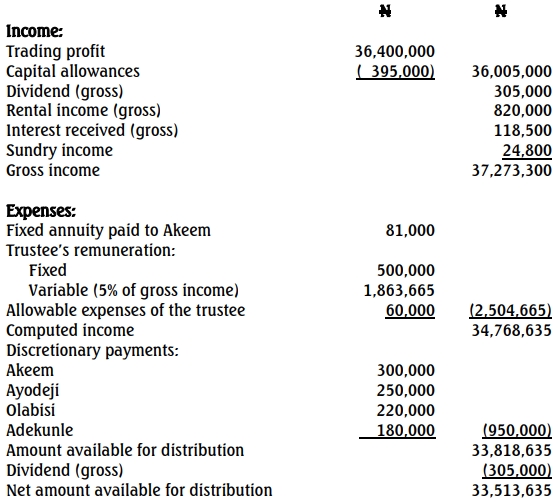 Chief Adio Jaiyesimi, a Chartered Accountant, died in London after a brief illness on June 10, 2015. He was survived by four children namely: Akeem; Ayodeji; Olabisi; and Adekunle. He created a trust for the benefits of his four children. The records of the trustee for the year ended December 31, 2020, have revealed the following: