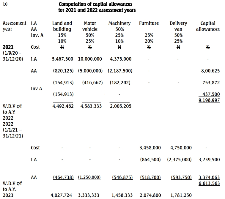 b. Compute the capital allowances.