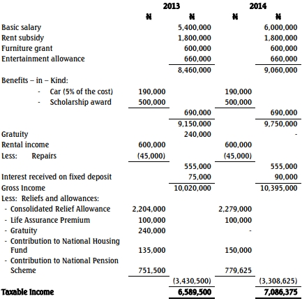 Mr. Babangida Muhammed has approached your firm to assist him in determining his personal income tax liability for the last two years and assist in obtaining a current Tax Clearance Certificate on his behalf from his relevant tax authority. Your firm is also to determine whether he had underpaid his tax for the previous two years and if so, how much additional tax he may be required to pay.