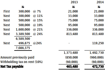 a. The Personal Income Tax payable in 2013 and 2014 Years of Assessment.