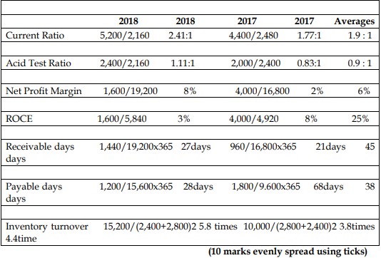 a) Prepare the following ratio analysis for 2018 financial year.