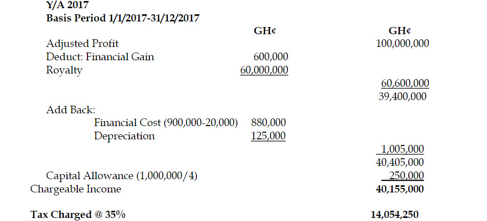 Written down value brought forward from 2016 after 1-year capital allowance was granted stood at GH¢1,000,000. This was accordingly certified by the Audit Unit of the Ghana Revenue Authority.